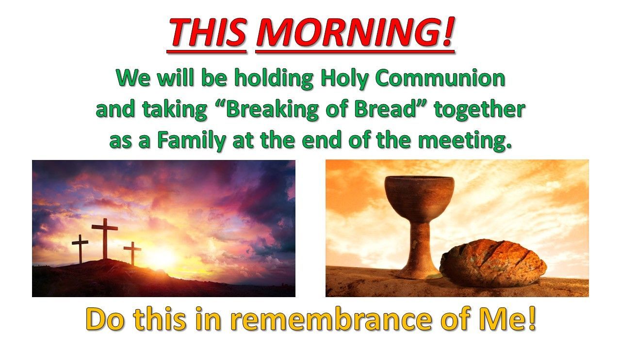 THIS Morning we will also be taking 'Breaking of Bread' (Holy Communion) together during the meeting.